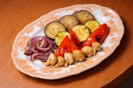Цукини, розовые томаты с сыром пармезан и соусом Песто