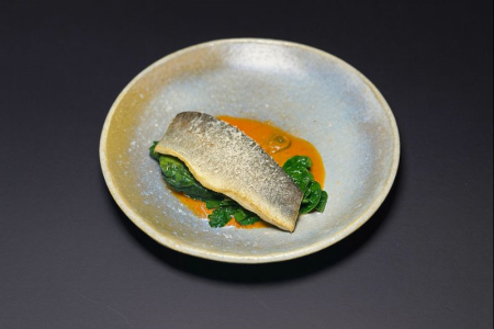 Сибас со шпинатом и средиземноморским соусом