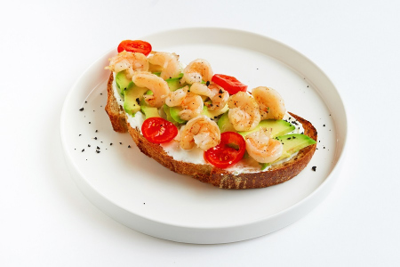 195 г790 ₽ Авокадо тост с креветками