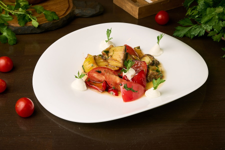 Тушеные овощи с сыром сулугуни