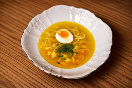 Куриный суп-лапша с перепелиным яйцом