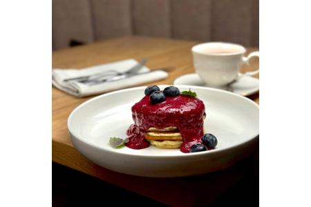 Панкейки с соусом смородина
