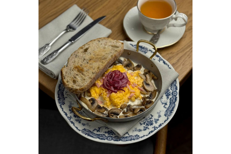 Скрембл с вешенками и шампиньонами в сливочно-трюфельном соусе
