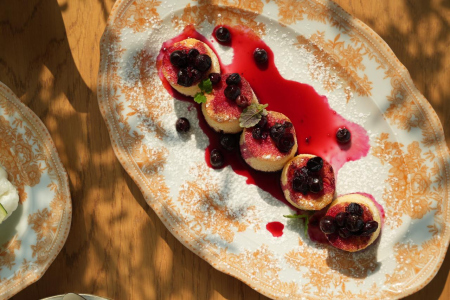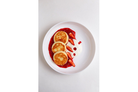 Сырники со сметаной и черной смородиной