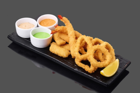 Куриные крылья со свежими овощами и соусом Блю-Чиз