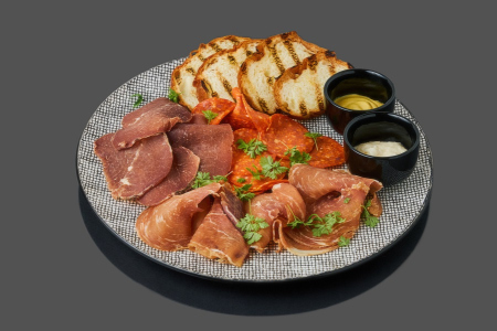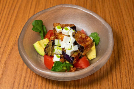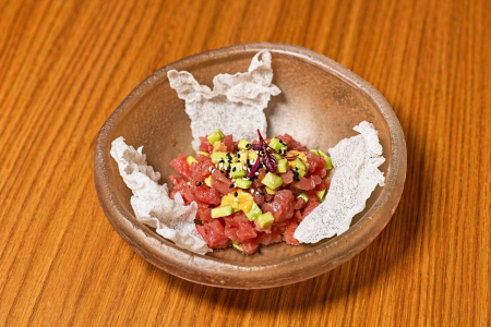 Острый тар-тар из ягненка с огурцом, мятой и кинзой