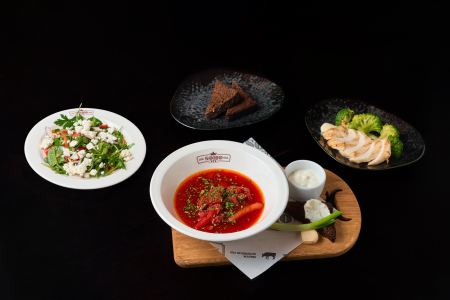 Обед 2 (Салат из сербской брынзы/Борщ с разварной говядиной/Куриная грудка