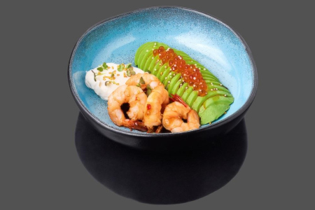 Авокадо с креветками и красной икрой